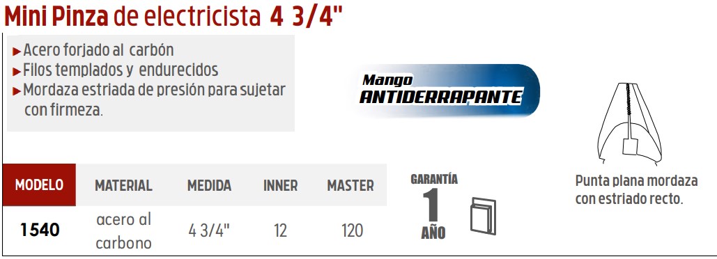 Mini Pinza de electricista 4 3/4" 1540 Adir